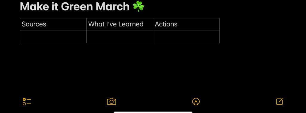 My challenge for the month of March is one of the most important influences in the art of living, and that’s personal finance. Make it Green March ☘️ is when I learn and do all that I can to improve my skills and situation around money. Prior to March 1st I’ll order books, find podcasts, schedule a meeting with a financial advisor, and prepare a section in my Notes app that looks something like this.