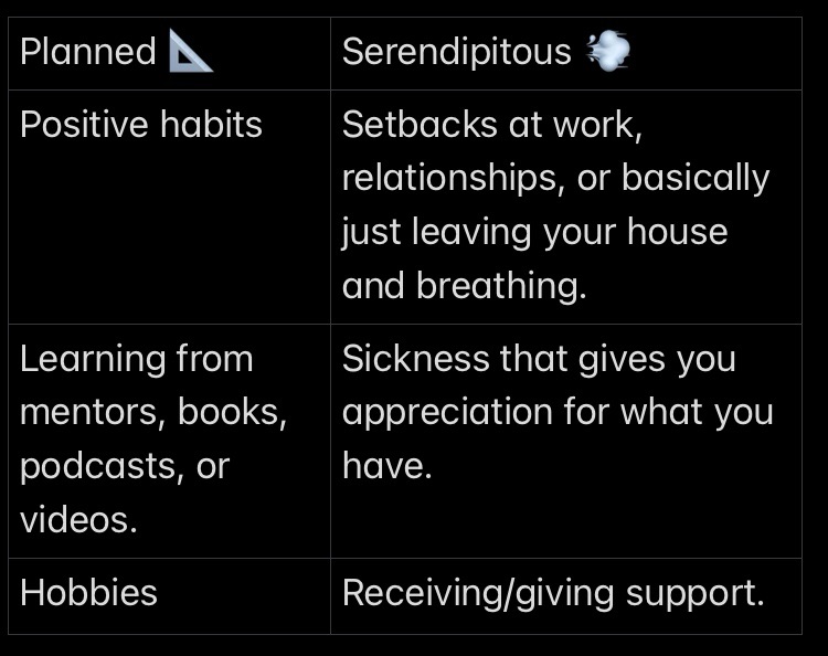 Experiences come with time and we there are lessons learned when we see them. This can come from daily reflection, journaling, or speaking with a mentor. Our growth often comes from two types of experiences—those we plan, and those that surprise us. Both kinds carry wisdom. But we need to pause, reflect, and extract meaning to truly grow from them.